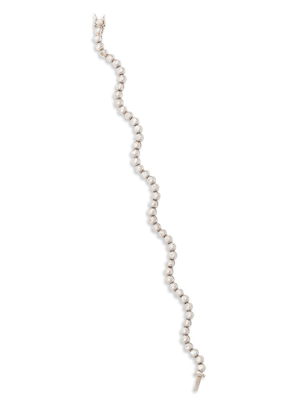 Containing 48 round brilliant cut diamonds weighing approximately 1.45 carats total in a wave design. Mounted in white gold.