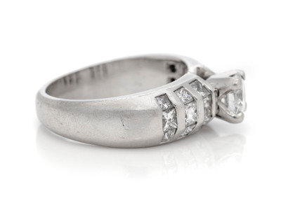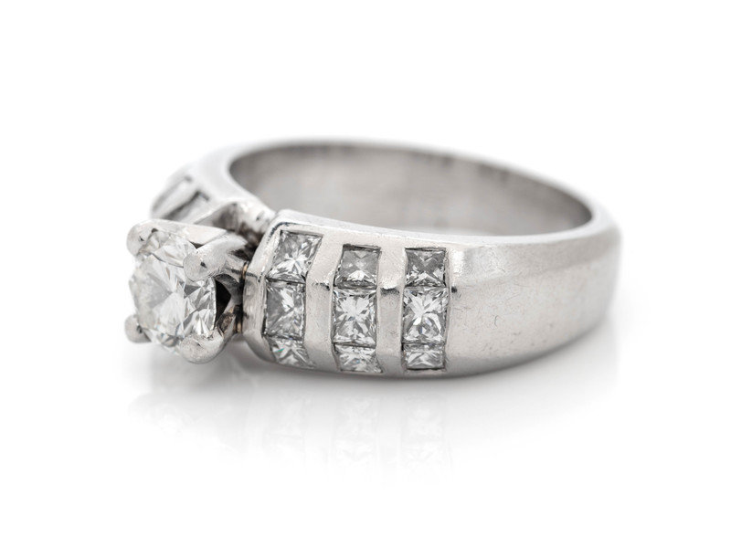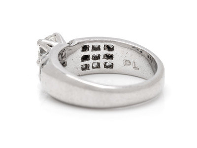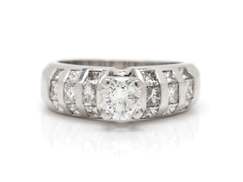 Containing one round brilliant cut diamond weighing approximately 0.70 carat and 18 princess cut diamonds weighing approximately 1.25 carats total.