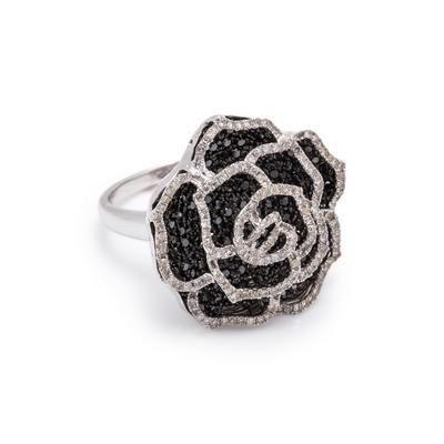DIAMOND AND BLACK DIAMOND ROSE RING