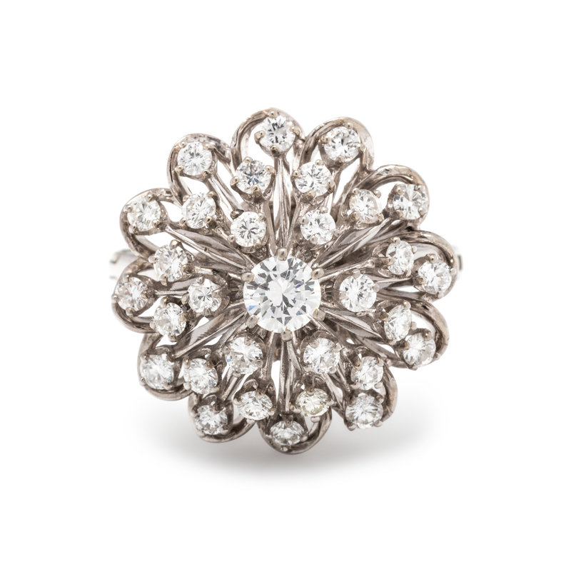 Containing 30 round brilliant cut diamonds weighing approximately 0.80 carat total. Mounted in white gold.