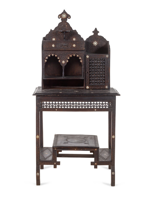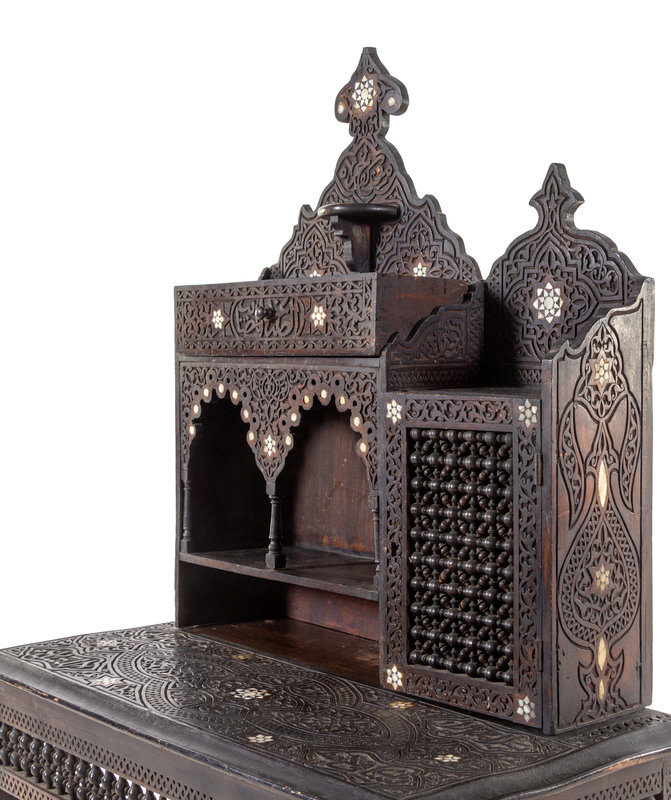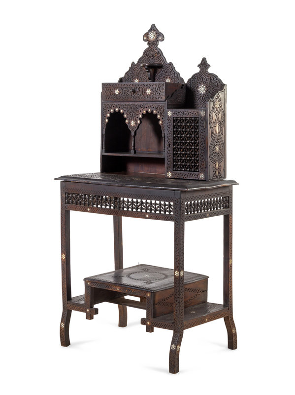 A Syrian Mother-of-Pearl Inlaid Carved Walnut Desk