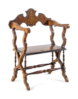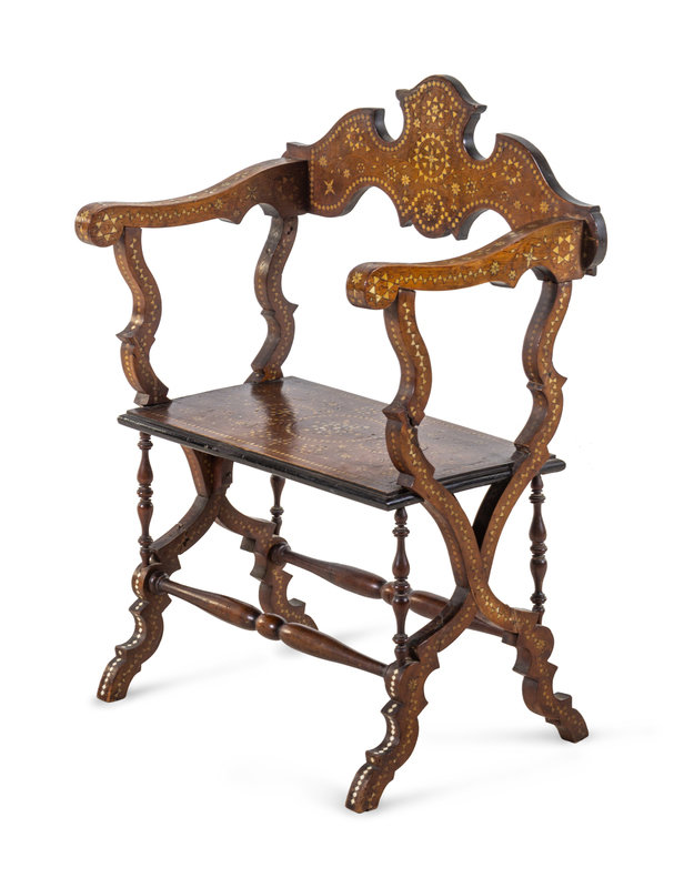A Moorish Style Bone Inlaid Walnut Armchair