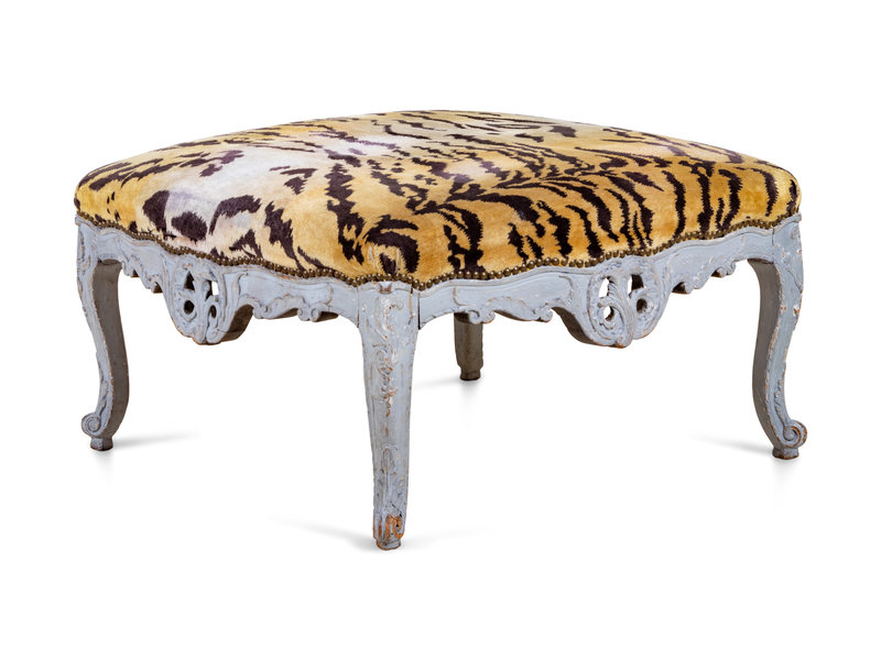 A Louis XV Style Carved and Painted Tabouret