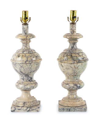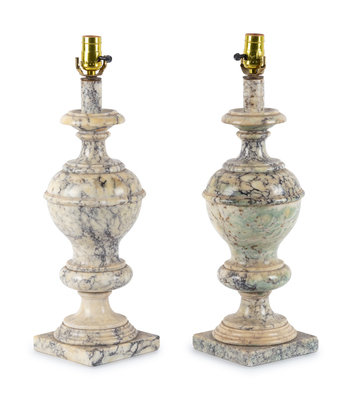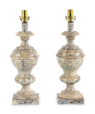 A Pair of Alabaster Finials Mounted as Lamps