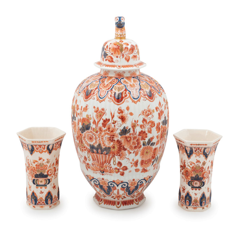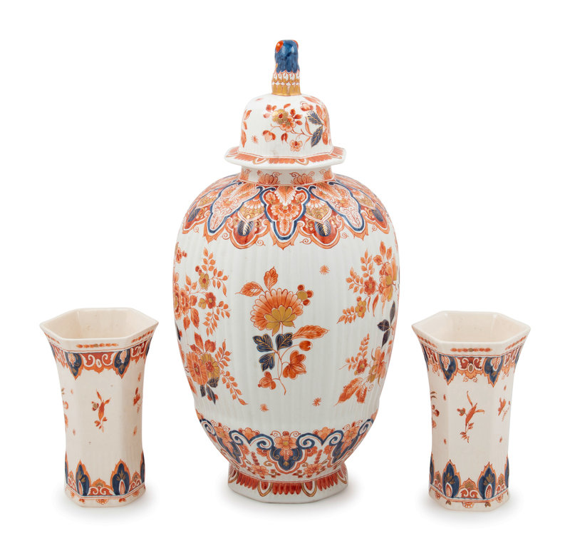 A Delft Porcelain Three-Piece Garniture