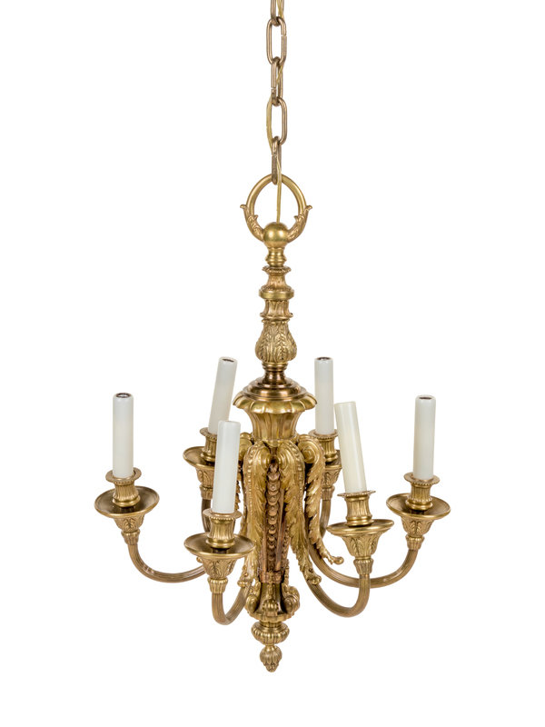 A Continental Brass Six-Light Chandelier