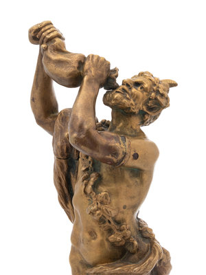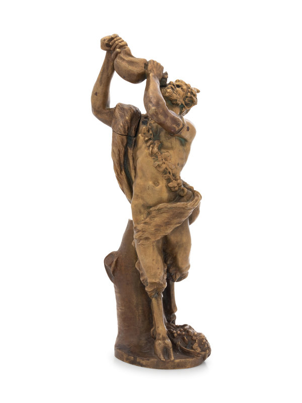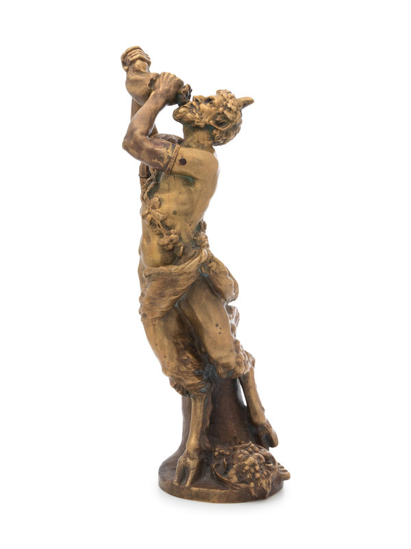A Continental Gilt Bronze Figure of a Satyr Drinking from a Wine Skin