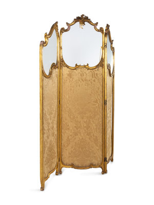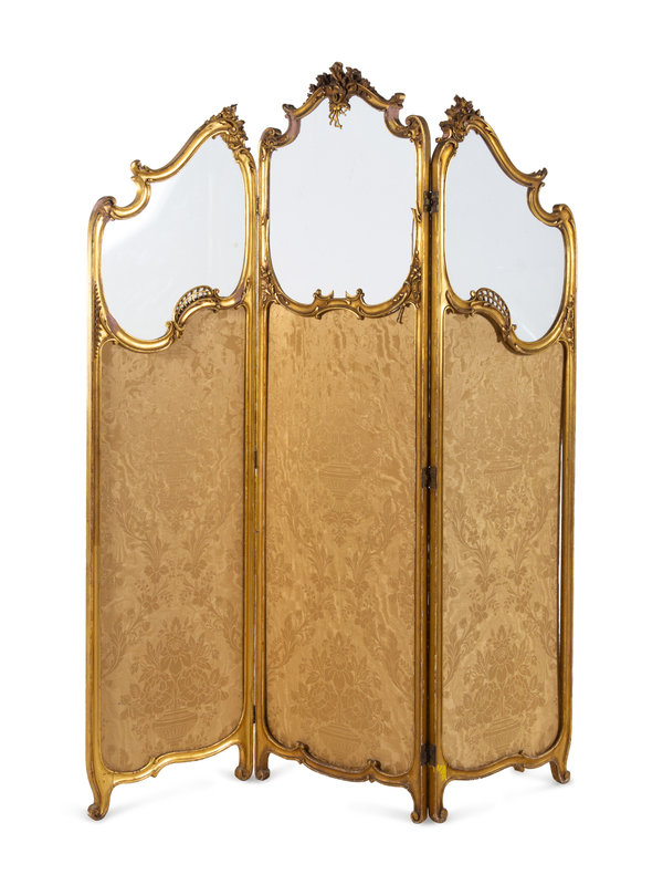 A Louis XV Style Giltwood Three-Panel Floor Screen