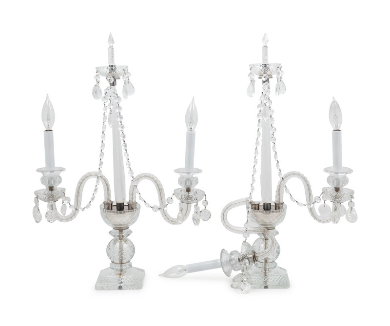 A Pair of George III Style Cut Glass Girandoles