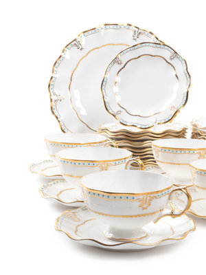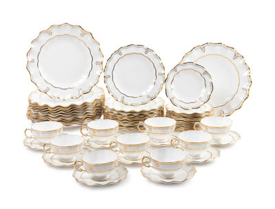Lombardy pattern, comprising dinner plates, salad plates, bread and butter plates, coffee cups and saucers; 60 items total.