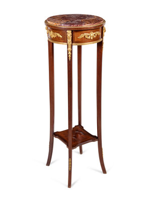 A Louis XVI Style Gilt Bronze Mounted Mahogany Marble-Top Pedestal Table