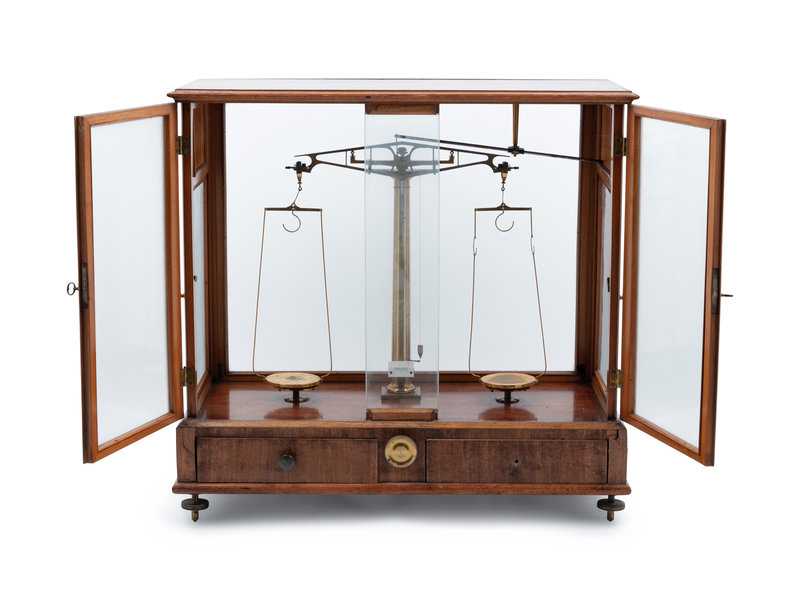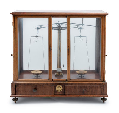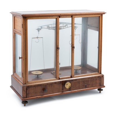 a cased analytical balance.