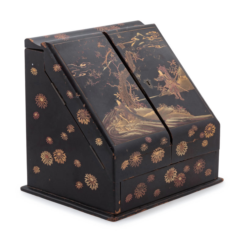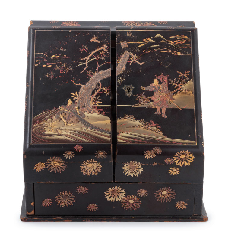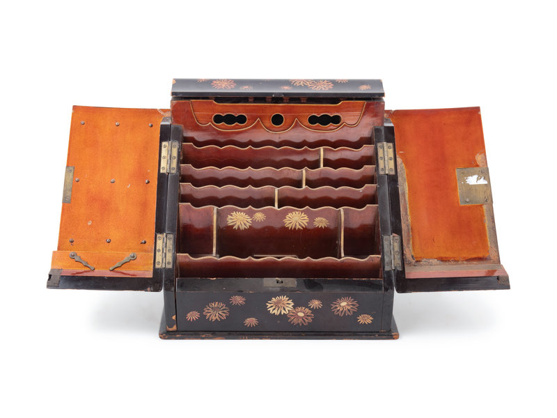 A Japanese Gilt, Black and Red Lacquered Stationary Chest
