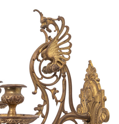 A Pair of Neoclassical Gilt Bronze Three-Light Sconces