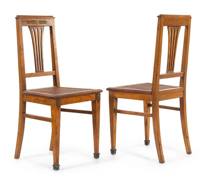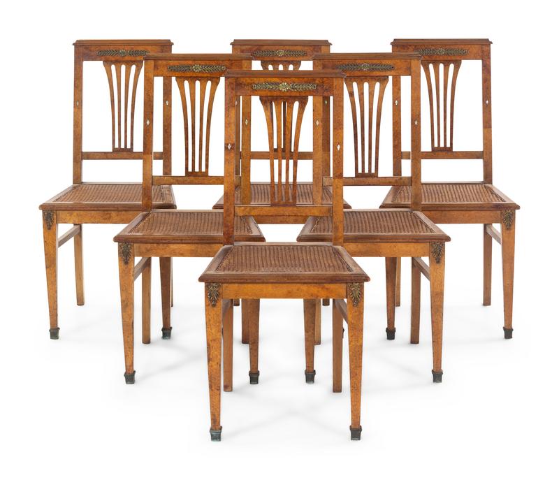 A Set of Six French Gilt Metal Mounted and Mother-of-Pearl Inlaid Side Chairs