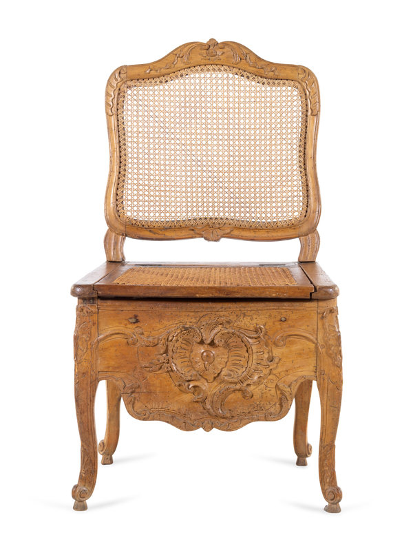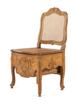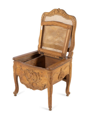 A Louis XV Provincial Carved Fruitwood Commode Chair