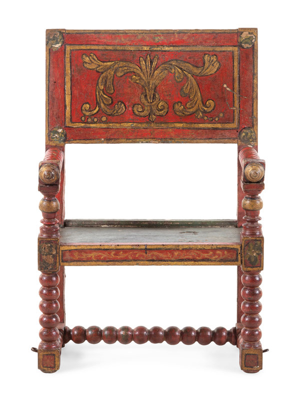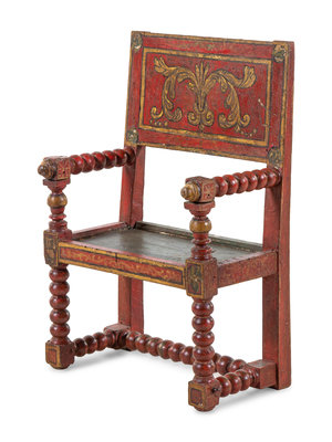 A Spanish Turned and Polychrome Painted Armchair for a Nativity Scene