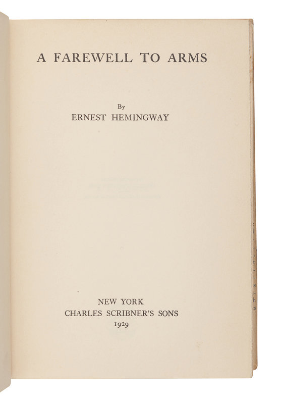 HEMINGWAY, Ernest (1899-1961). A Farewell to Arms. New York: Charles Scribner’s Sons, 1929.