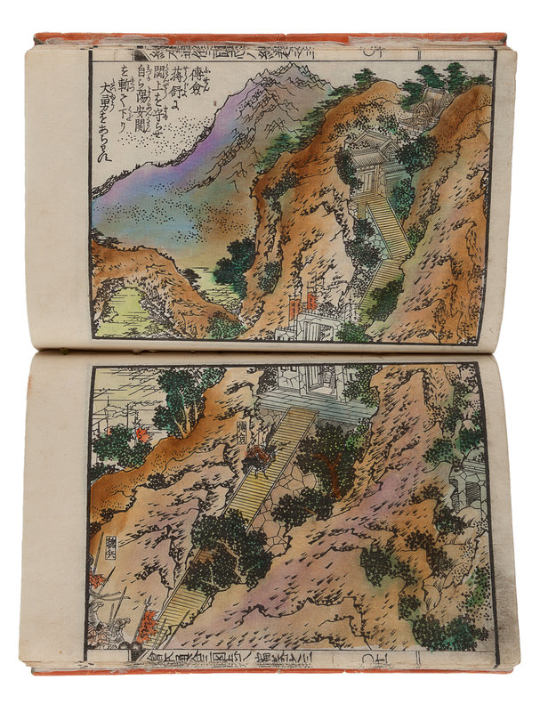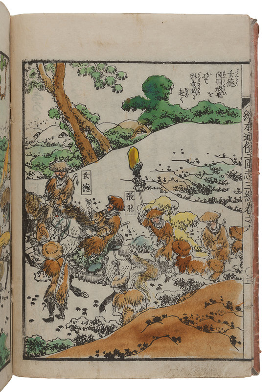 Japanese translation of the Chinese classic Romance of the Three Kingdoms with illustrations, some hand-colored, by a pupil of the master ukiyo-e artist Katsushika Hokusai, Katsushika Taito (sometimes known as Katsushika Taito II, as Hokusai also used the gō Taito).