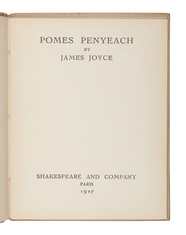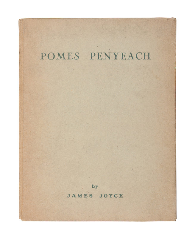 FIRST EDITION, a collection of 13 poems written in Trieste, Zurich and Paris from 1913-1920. “The title of the collection evokes the slurred pronunciation of a street hawker crying his wares – poems for a penny – to the passing crowd” (Fargnoli and Gillespie, James Joyce A-Z, p.180). Slocum and Calhoun A24.