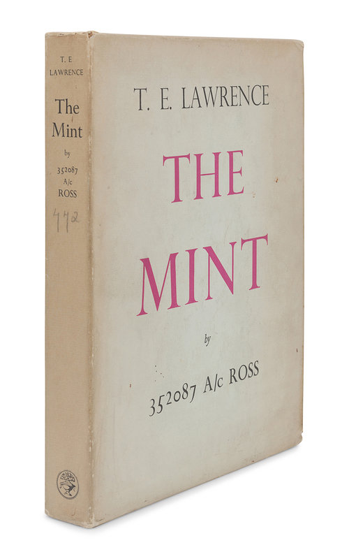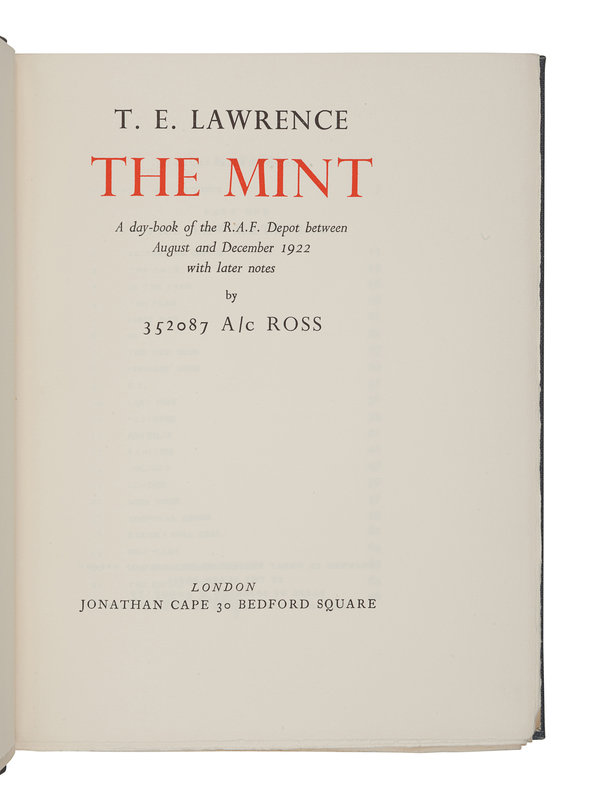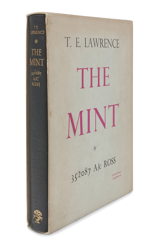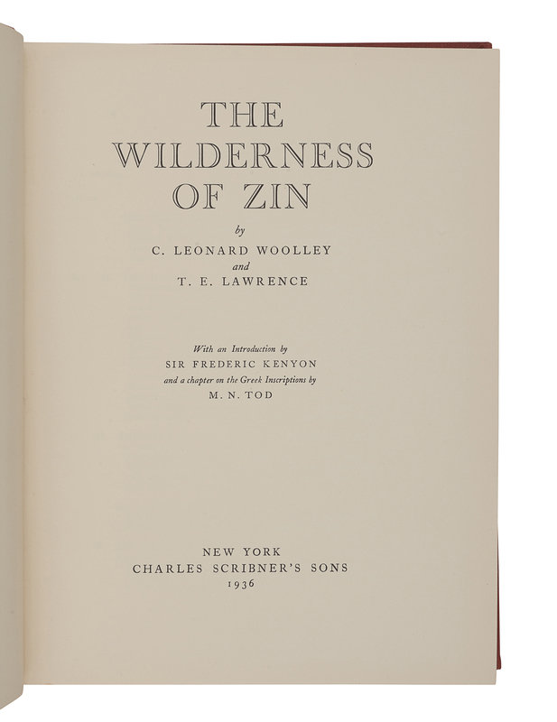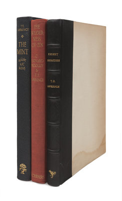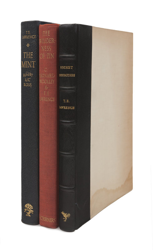 [With:] LAWRENCE, T. E. The Mint. London: Jonathan Cape, 1955. 4to. Original publisher’s quarter morocco, top edge gilt, others uncut; publisher’s board slipcase. FIRST EDITION, LIMITED ISSUE, number 772 of 2,000 copies. — WOOLLEY, Leonard; and T. E. LAWRENCE. The Wilderness of Zin. New York: Charles Scribner’s Sons, 1936. 4to. Original cloth. FIRST AMERICAN EDITION.