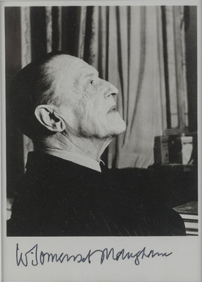 MAUGHAM, W. Somerset (1874-1965). Photographic print portrait of Maugham in profile on his 80th birthday, signed “W. Somerset Maugham” [1954]. 8vo, visible area 160 x 115, matted and framed, unexamined out of frame.