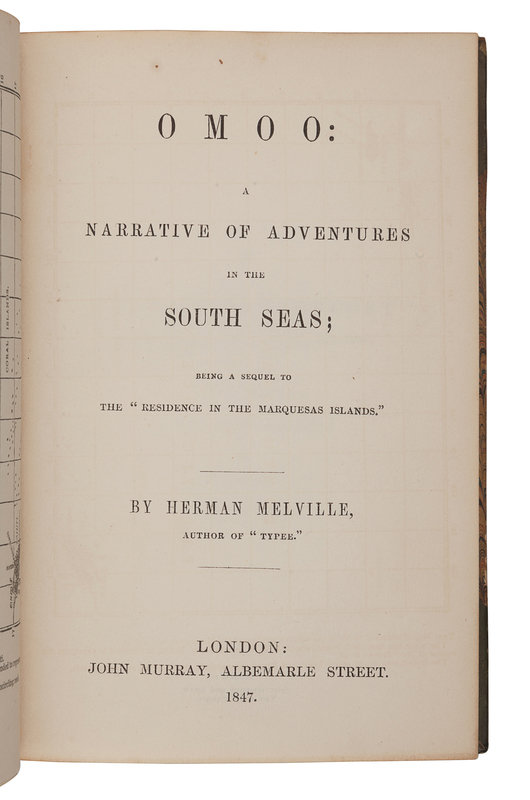 MELVILLE, Herman (1819-1891). Omoo: A Narrative of Adventures in the South Seas. London: John Murray, 1847.