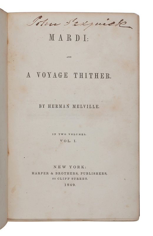 MELVILLE, Herman (1819-1891). Mardi: and a Voyage Thither. New York: Harper & Brothers, 1849.