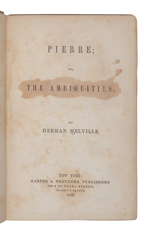 MELVILLE, Herman (1819-1891). Pierre; or, the Ambiguities. New York: Harper & Brothers, 1852.