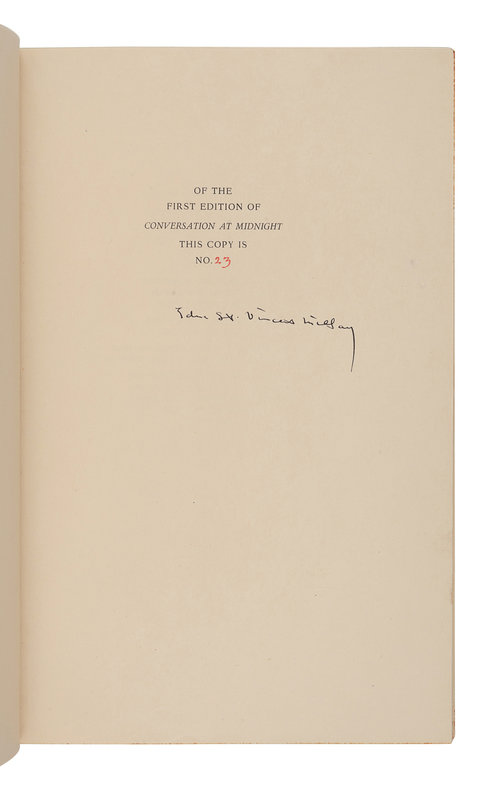MILLAY, Edna St. Vincent (1892-1950). Conversation at Midnight. New York and London: Harper & Brothers, 1937.