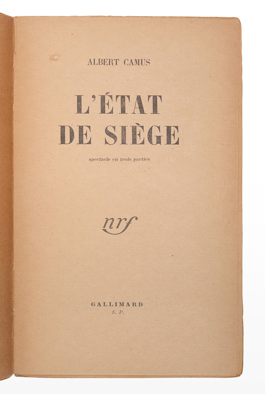 CAMUS, Albert (1913-1960). L'État de siège. Spectacle en trois parties. Paris: Gallimard, 1948.