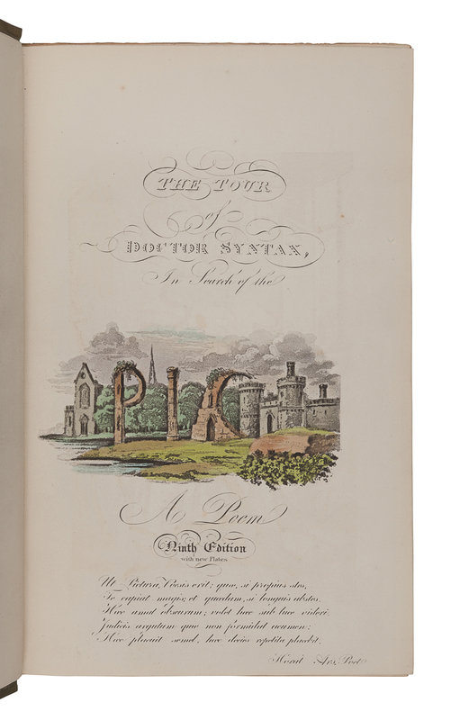 ROWLANDSON, Thomas (1757-1827), illustrator. -- COMBE, William (1741-1823). The First Tour of Doctor Syntax, in Search of the Picturesque. - The Second Tour of Doctor Syntax, in Search of Consolation. - The Third Tour of Doctor Syntax, in Search of a Wife. London: Nattali and Bond, [1855].