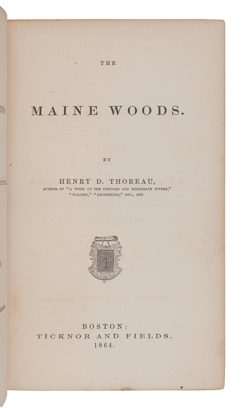 THOREAU, Henry David (1817-1862). The Maine Woods. Boston: Ticknor and Fields, 1864.