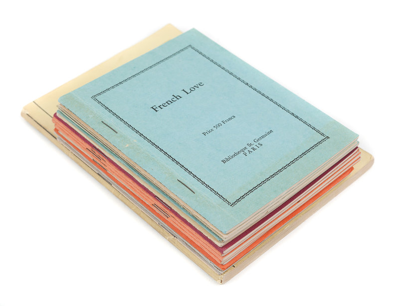 [With:] A group of 15 erotic ephemeral "readers," printed in the U.S., but with various false imprints including: Paris, Bibliotheque St. Germaine; Paris, Published for Private Circulation Only; Nice, M. Seufferin; Havana; and London, Passion Publishers. Each 16mo. Each approximately 32pp. Original stapled wrappers. Titles including: French Love, Pretty Gal, Love's Folly, No Love on Sunday, Man Crazy, and Fool's Paradise.