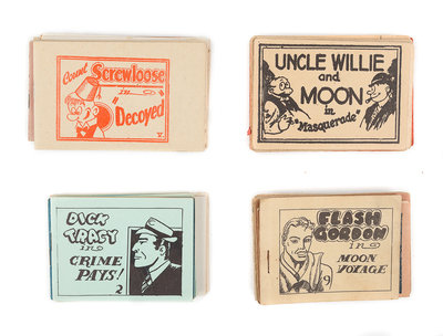 Each 32mo (each approximately 70 x 115 mm). Printed in black, red or blue; illustrated. Original stapled illustrated wrappers. With characters including Dick Tracy, Olive Oyl, Popeye, Flash Gordon, Uncle Willie, Moon Mullins, Dagwood, Blondie, 'Lil Abner, Betty Boop, Joe Palooka, Jiggs, and Esther Williams.