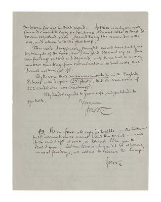 During his visit, at Sayer’s urging, Tolkien created the first recorded readings from The Lord of the Rings which still survive. Sayer also encouraged Tolkien to send the manuscript to Rayner Unwin (see lot 220). In a letter to Rayner Unwin enclosing a blurb from Sayer for The Lord of the Rings, in which Sayer refers to Tolkien as the “greatest living poet,” Tolkien refers to Sayer as “the most normal reader and liker of the work that I could think of…the blurb…surprised me.”