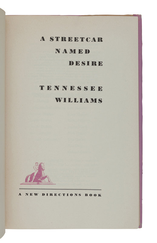 WILLIAMS, Tennessee (1911-1983). A Streetcar Named Desire. New York: New Directions, 1947.