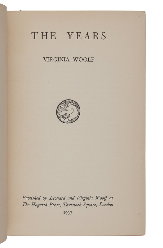 WOOLF, Virginia (1882-1941). The Years. London: Hogarth Press, 1937.