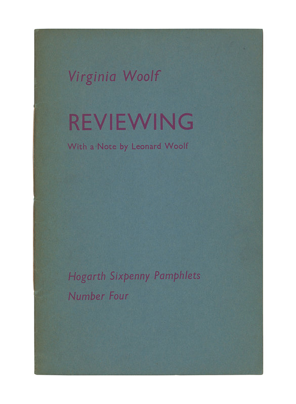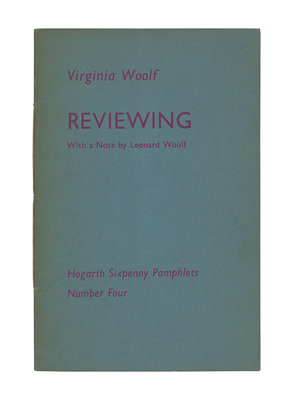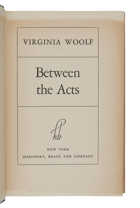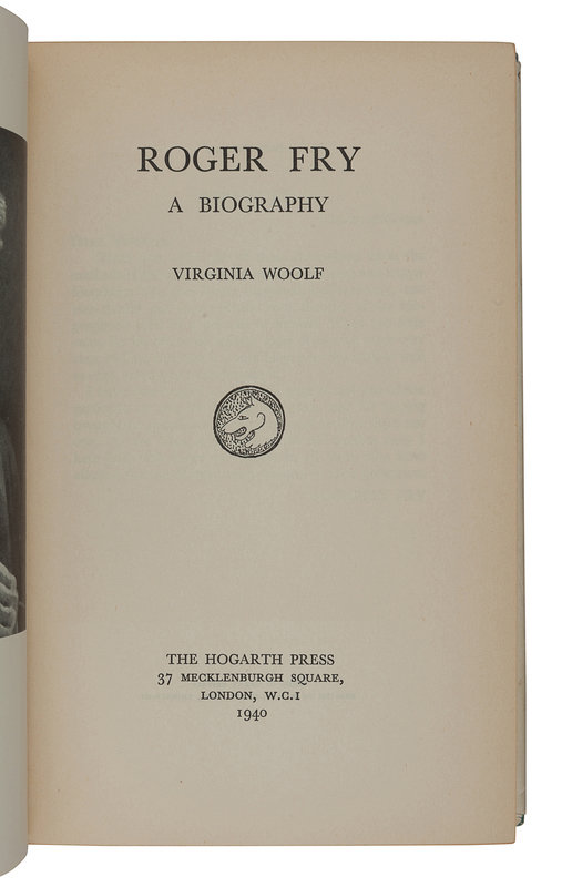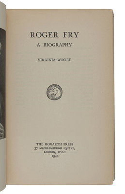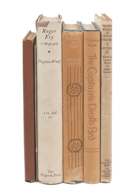 Monday or Tuesday. Richmond, 1921. Original cloth-backed pictorial boards. Fitzpatrick A5a. -- Reviewing. London, 1939. Original blue-grey wrappers; quarter morocco folding case. Fitzpatrick A24a. -- Roger Fry a Biography. London, 1940. Original cloth; original printed d/j. Fitzpatrick A25a. -- Between the Acts. New York, 1941. Original cloth; original pictorial d/j. Fitzpatrick A26b. FIRST AMERICAN EDITION. -- Captain’s Death Bed and other Essays. New York, 1950. Original cloth; original pictorial d/j. Fitzpatrick A30a. -- Virginia Woolf & Lytton Strachey Letters. London, 1956. Original cloth; original pictorial d/j. Fitzpatrick A32a. Together, 6 works in 6 volumes, all FIRST EDITIONS except where indicated, condition generally fine.