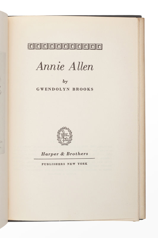 BROOKS, Gwendolyn (1917-2000). Annie Allen. New York: Harper & Brothers, 1949.