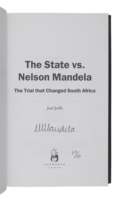 FIRST EDITION, LIMITED ISSUE, number 10 of 10 specially bound copies, SIGNED BY NELSON MANDELA. An account of the landmark Rivonia Trial of 1963-1964 written by Joel Joffe, a human rights lawyer who was one of the defense attorneys for Mandela and his co-defendants.