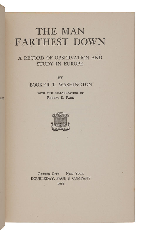 WASHINGTON, Booker T. (1856-1915) The Man Farthest Down. Garden City: Doubleday, Page & Company, 1912.