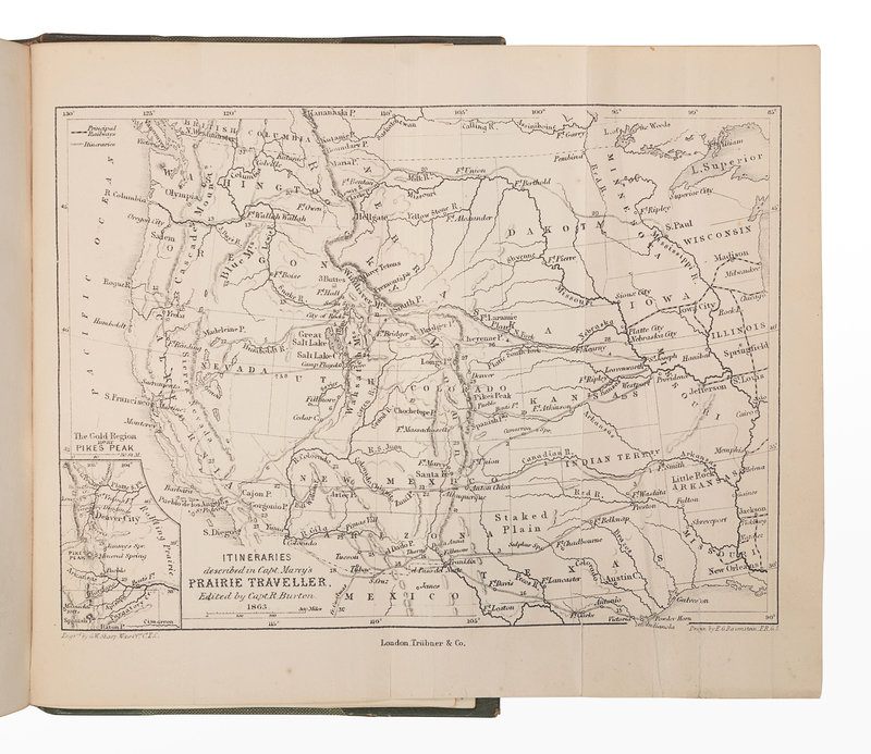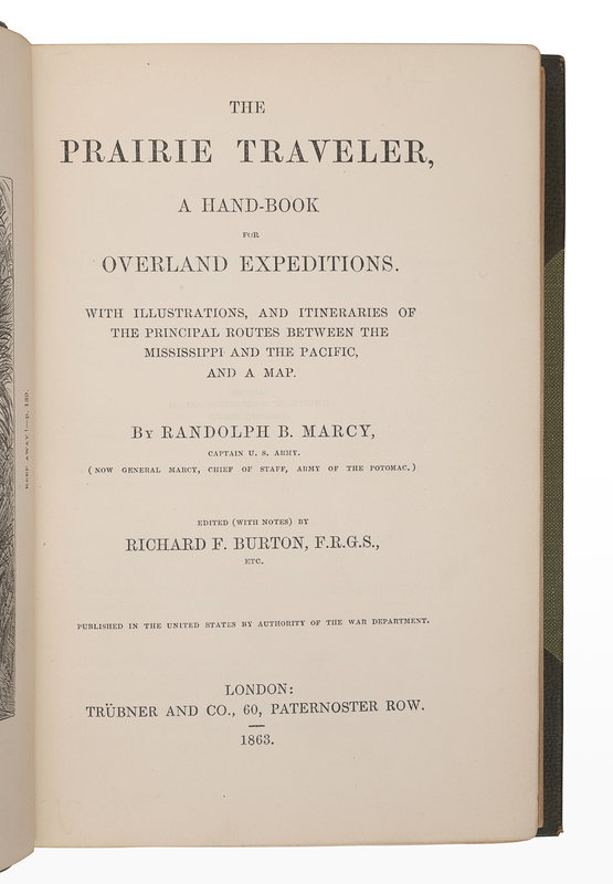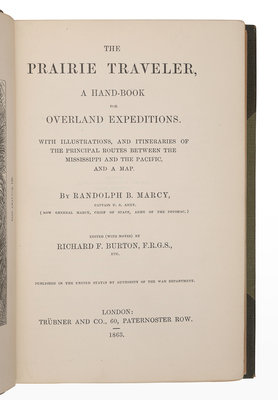 BURTON, Richard Francis (1821-1890), editor. -- MARCY, Randolph B. (1812-1887). The Prairie Traveler, a Hand-Book for Overland Expeditions, with Illustrations, and Itineraries of the Principal Routes Between the Mississippi and the Pacific, and a Map. London: Trübner and Co., 1863.