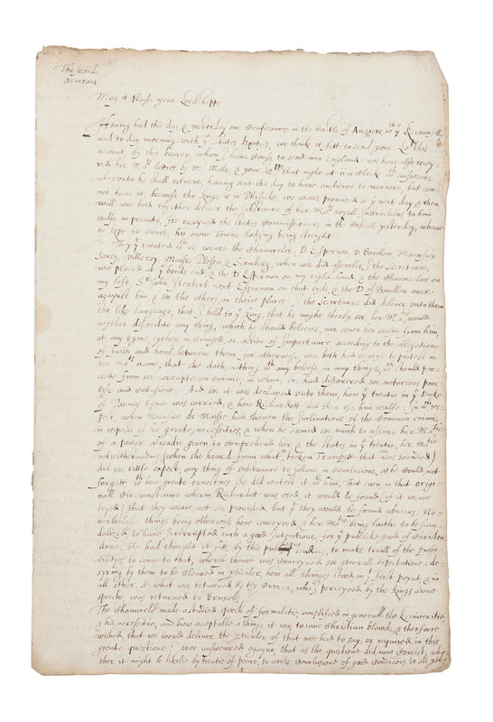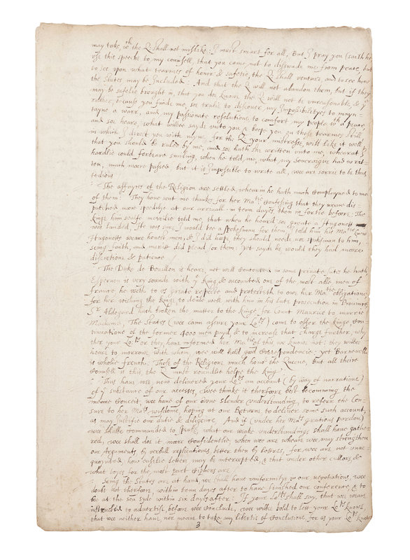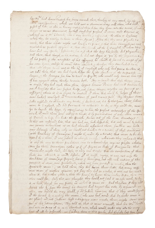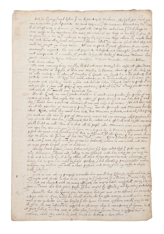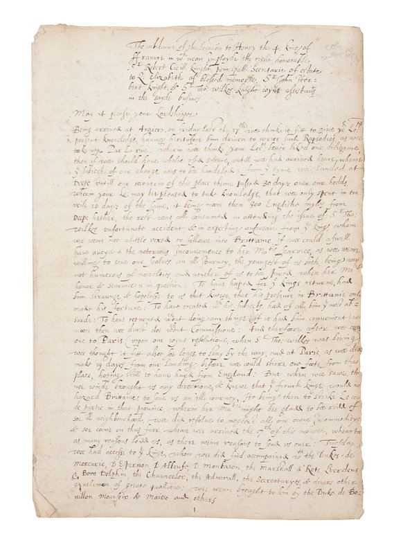 Early copies of Robert Cecil's two dispatches relating the events and progress of his important mission to the King of France, undertaken to dissuade the latter from entering into an alliance with King Philip II of Spain, who sought friends in his long conflict with England. Sir Robert Cecil had recently been appointed secretary of state after years of de facto service in the office. The officials of his embassy included his brother-in-law, Lord Brooke, the Earl of Southampton, Sir Walter Raleigh, and others.