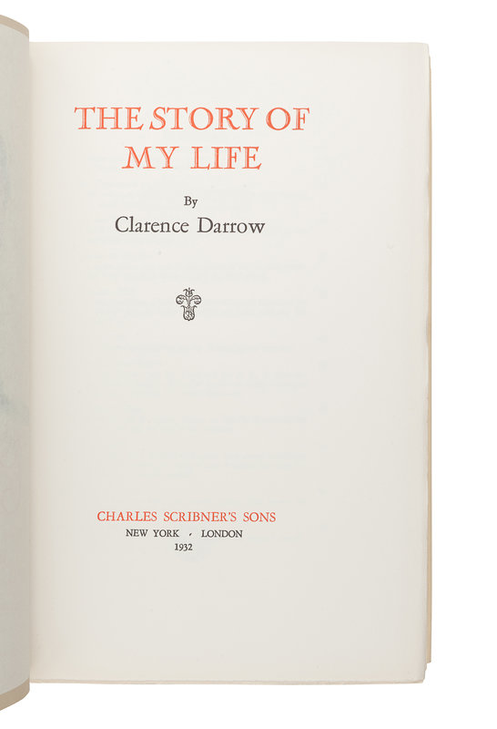 DARROW, Clarence (1857-1938). The Story of My Life. New York: Charles Scribner’s Sons, 1932.
