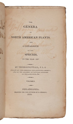 NUTTALL, Thomas (1786-1859). The Genera of North American Plants, and a Catalogue of the Species to the Year 1817. Philadelphia: D. Heartt for the Author, 1818.