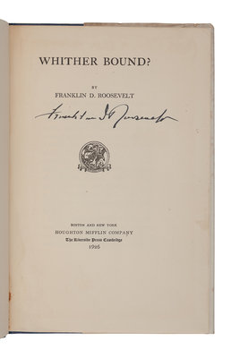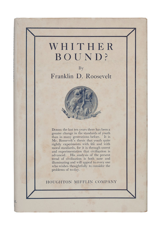 ROOSEVELT, Franklin Delano (1882-1945). Whither Bound? Boston and New York: The Riverside Press for Houghton Mifflin Company, 1926.