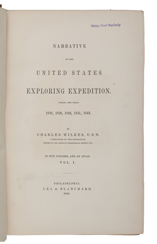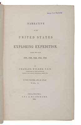 WILKES, Charles (1798-1877). Narrative of the United States Exploring Expedition, during the Years 1838-42. Philadelphia: Lea & Blanchard, 1845.