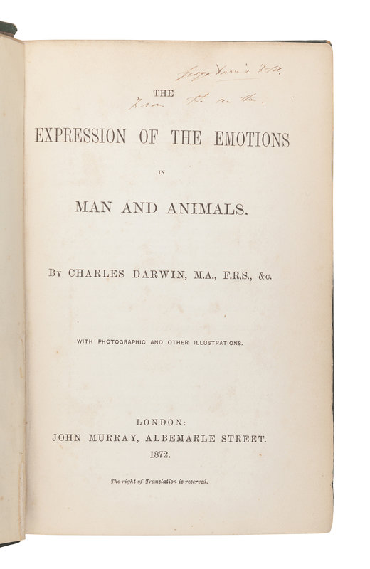 DARWIN, Charles (1809-1882). The Expression of the Emotions in Man and Animals. John Murray, 1872.