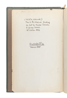 The present copy (as well as most other presentation copies) has its plates numbered in roman instead of arabic, contradicting Freeman's priority of arabic numbered plates: since this copy was one of those specially prepared for presentation by having its edges trimmed by the binder, it is most likely that Darwin would have presented copies from the earlier issue. Freeman 1141; Garrison-Morton 4975; Norman 600.